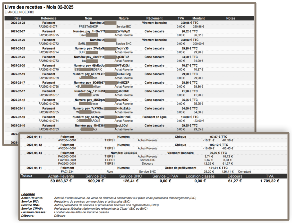 - S’auto-actualise à chaque ajout, modification ou suppression d’un règlement ou d’une facture;